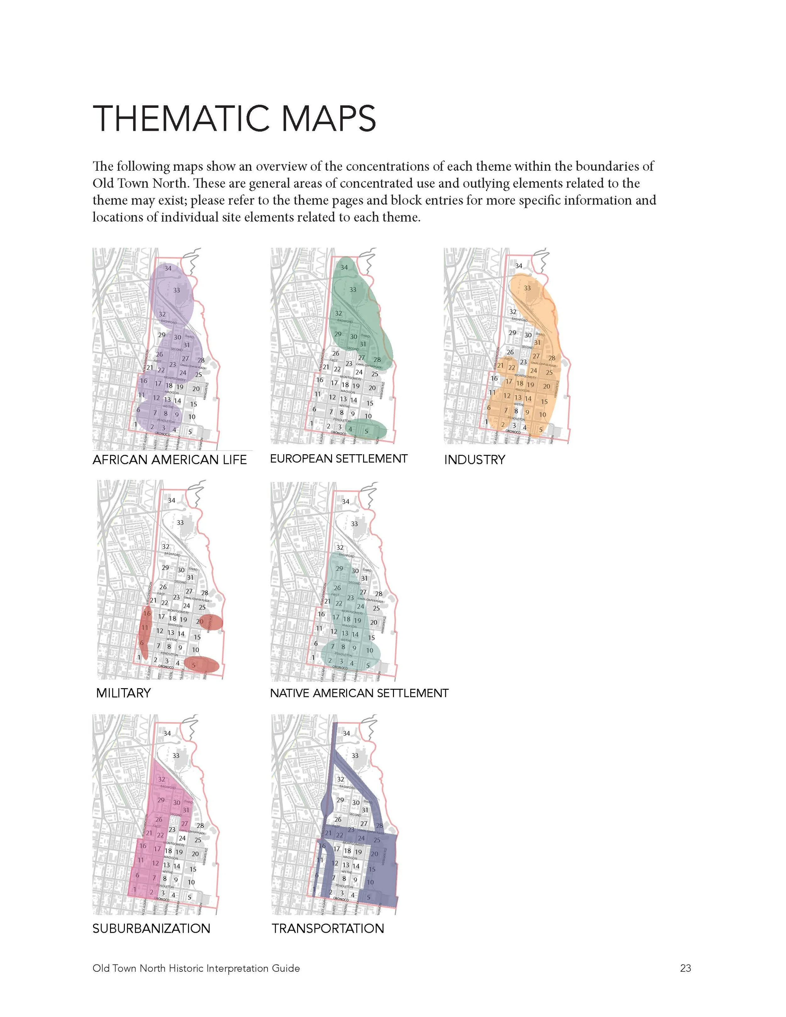 PRESERVE/scapes was challenged to develop a plan that preserved and conveyed the rich history of a neighborhood where many historical points of interest are no longer physically present. Planning included extensive archival research, community engagement and working sessions, coordinating with a team of archaeologists, and developing a graphically intensive planning document. The resulting Old Town North Historic Interpretation Guide provides a framework for a holistic interpretive program that provokes an interest in the past, fosters a sense of place, and encourages stewardship of the historic elements that remain.